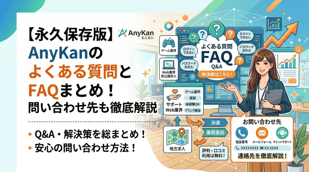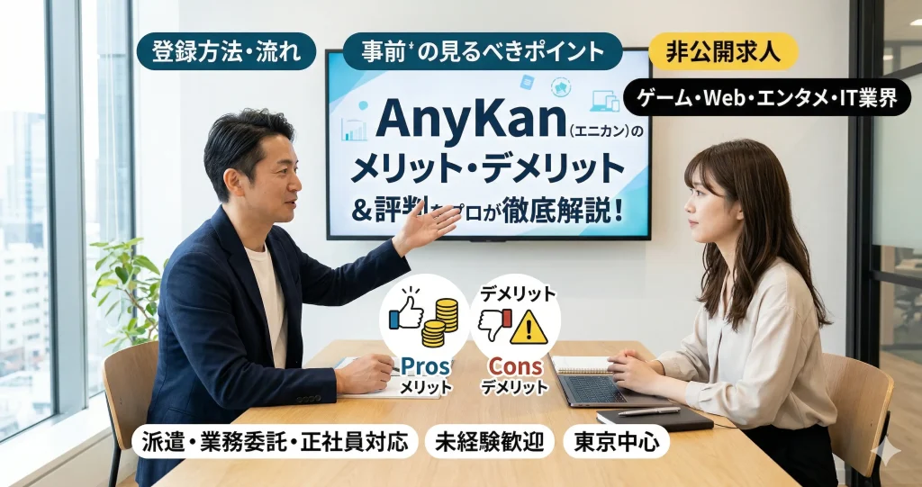 AnyKanは、Web・ゲーム・エンタメ・IT業界に特化したエージェントとして、多くのクリエイターから高い評価を得ています。この記事では、転職・就職情報のプロの視点から、AnyKanのサービスの特徴や選ばれる理由、他社にはない独自の強みについて徹底解説します。