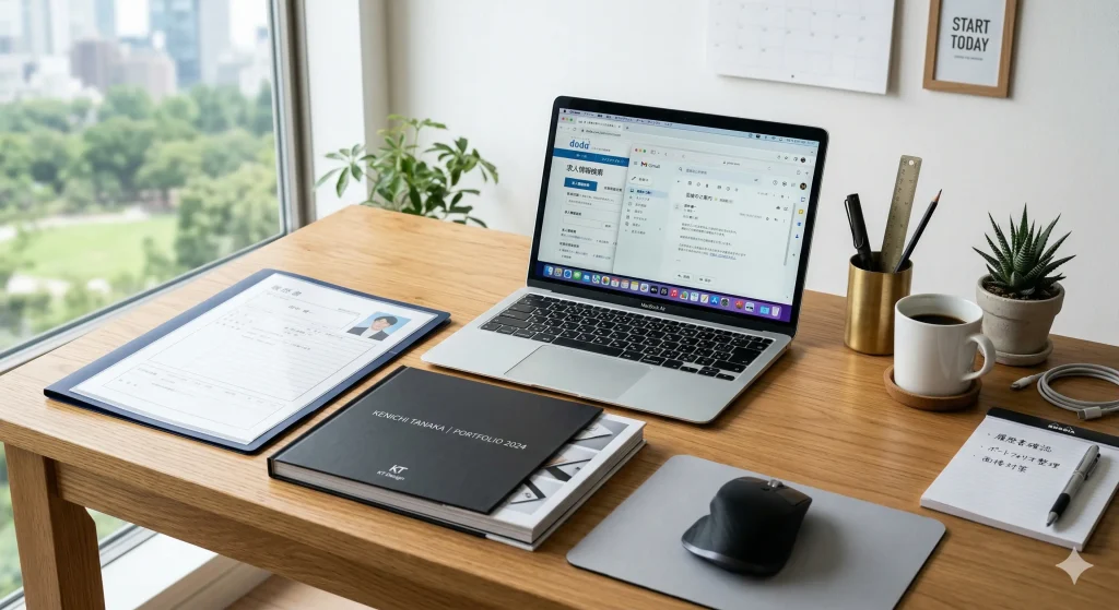 デザイナーやプログラマーであれば、過去に制作したモデルデータ、イラスト、携わったシステムのソースコード(公開可能な範囲で)などをまとめたポートフォリオは必須の武器となります。まだ完璧な状態ではなくても、現時点で見せられるものを準備しておきましょう。