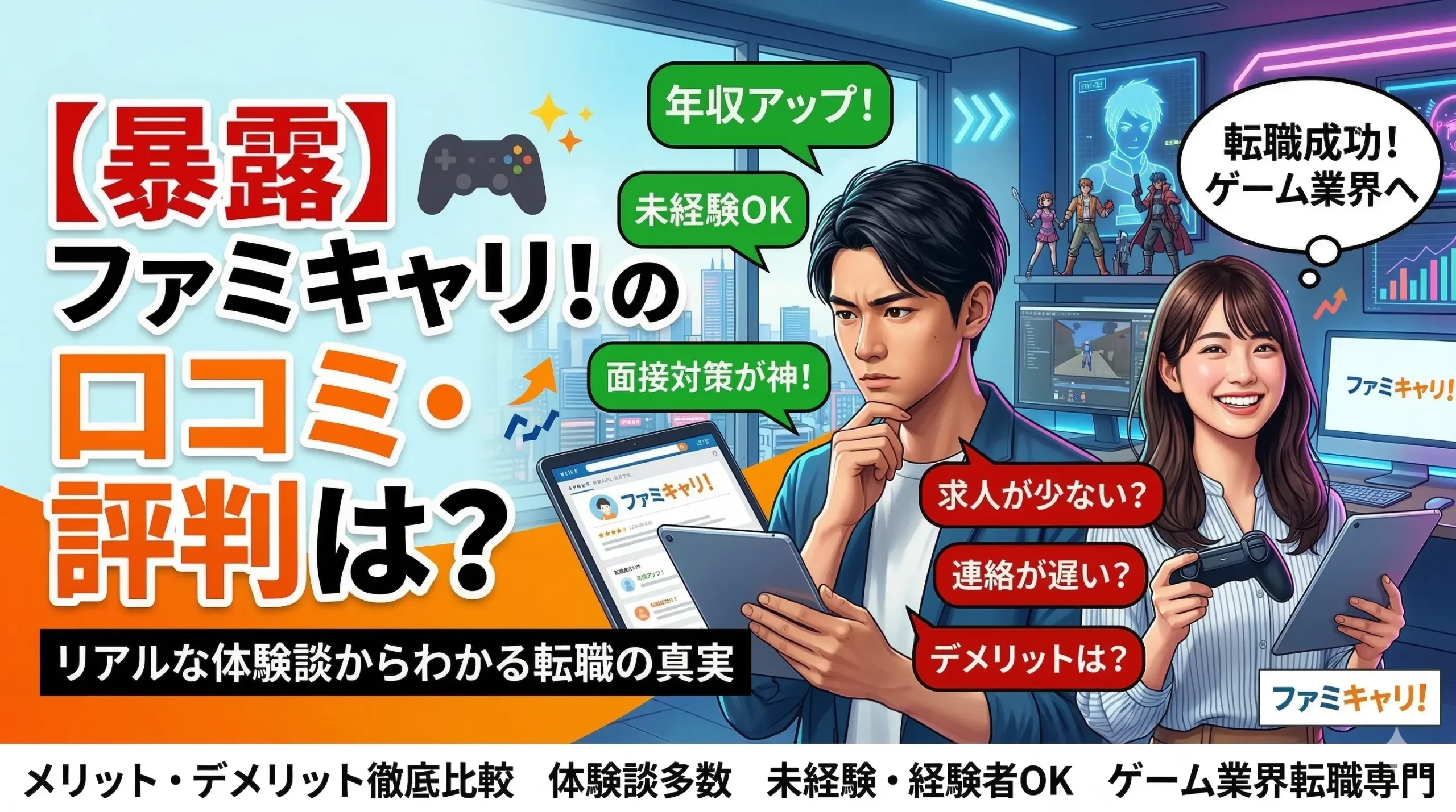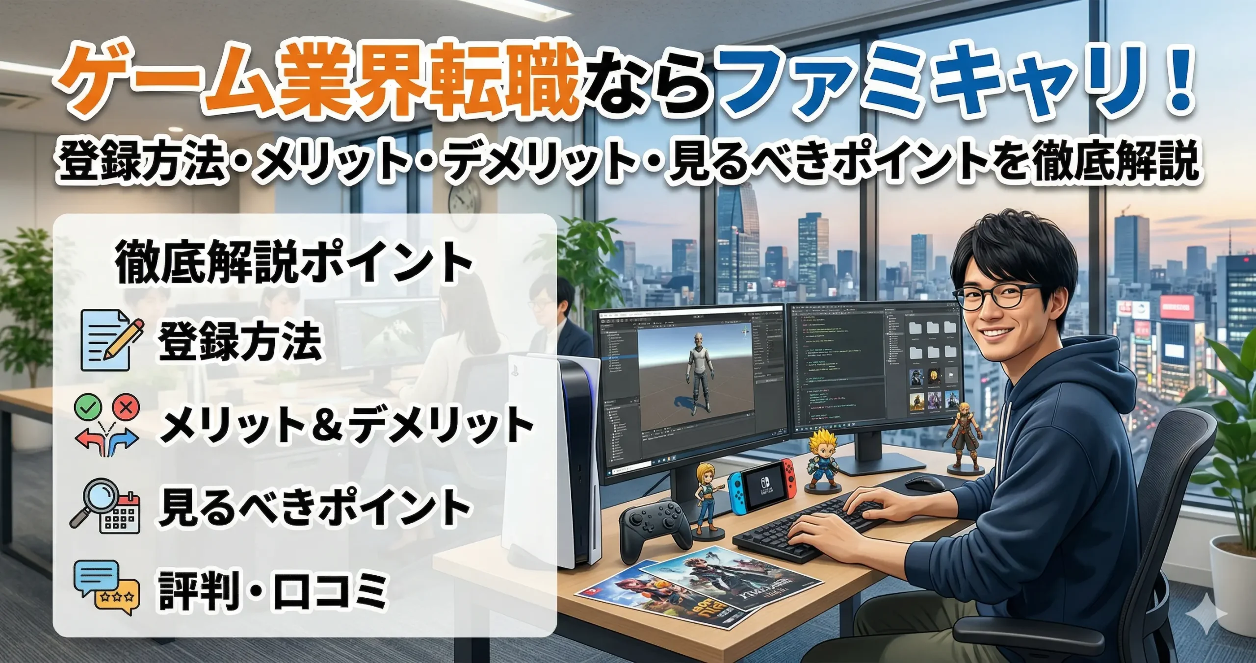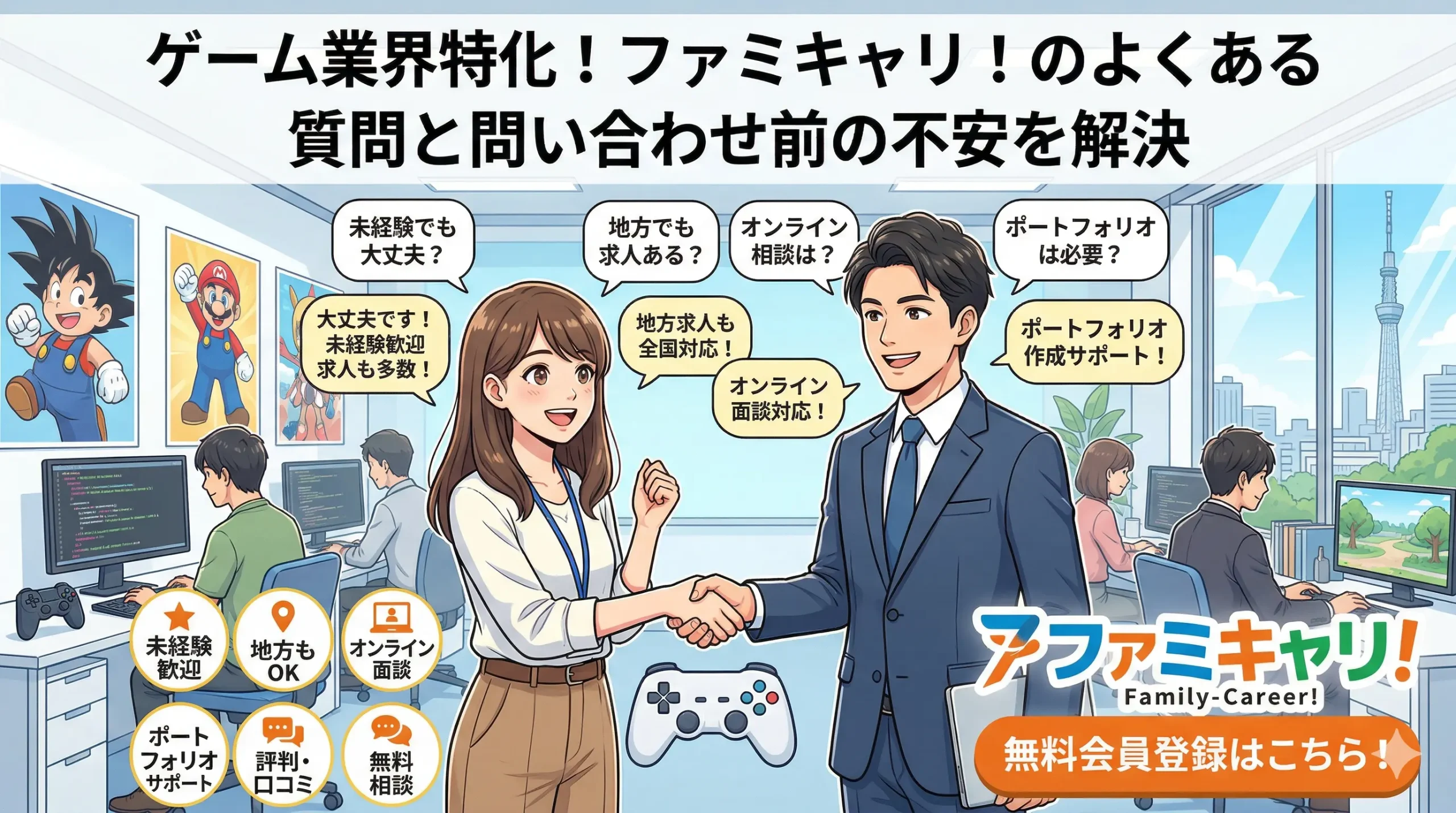 ファミキャリ!ゲーム業界の転職支援を軸に検討しやすいゲーム業界でキャリアアップを目指したい人専門性、面接対策、ポートフォリオ支援の声を確認したい人向け