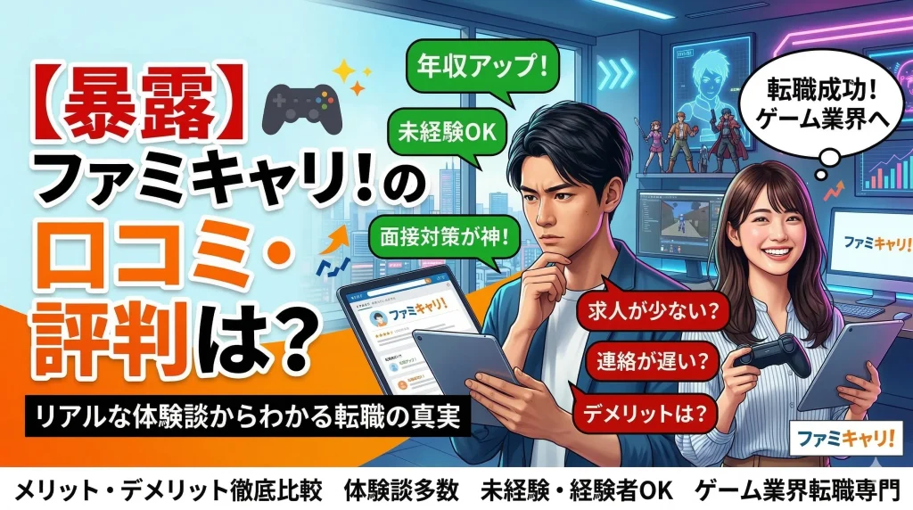ゲーム業界への転職を考えているクリエイターにとって、どの転職エージェントを利用するかは今後のキャリアを左右する重要な選択です。数あるサービスの中でも「ファミキャリ!」は、ゲーム業界に特化した圧倒的な強みを持つエージェントとして高い注目を集めています。