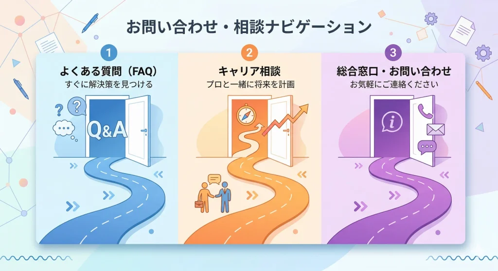 「FAQで解決する内容なのか」「面談で相談すべき内容なのか」「個別問い合わせが必要なのか」を先に切り分けておくことで、やり取りをスムーズに進められます。