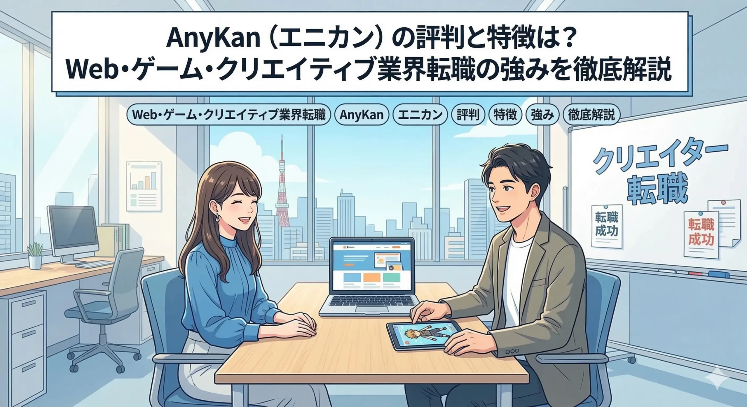 | AnyKan | Web・ゲーム・エンタメ業界に強く、案件数の多さとスピード感が魅力 | 求人数や応募スピードも重視したい人 | 比較的多め | 幅広い案件提案を受けやすい | 案件数やスピード感を評価しやすい一方、担当者や求人との相性確認は大切 |