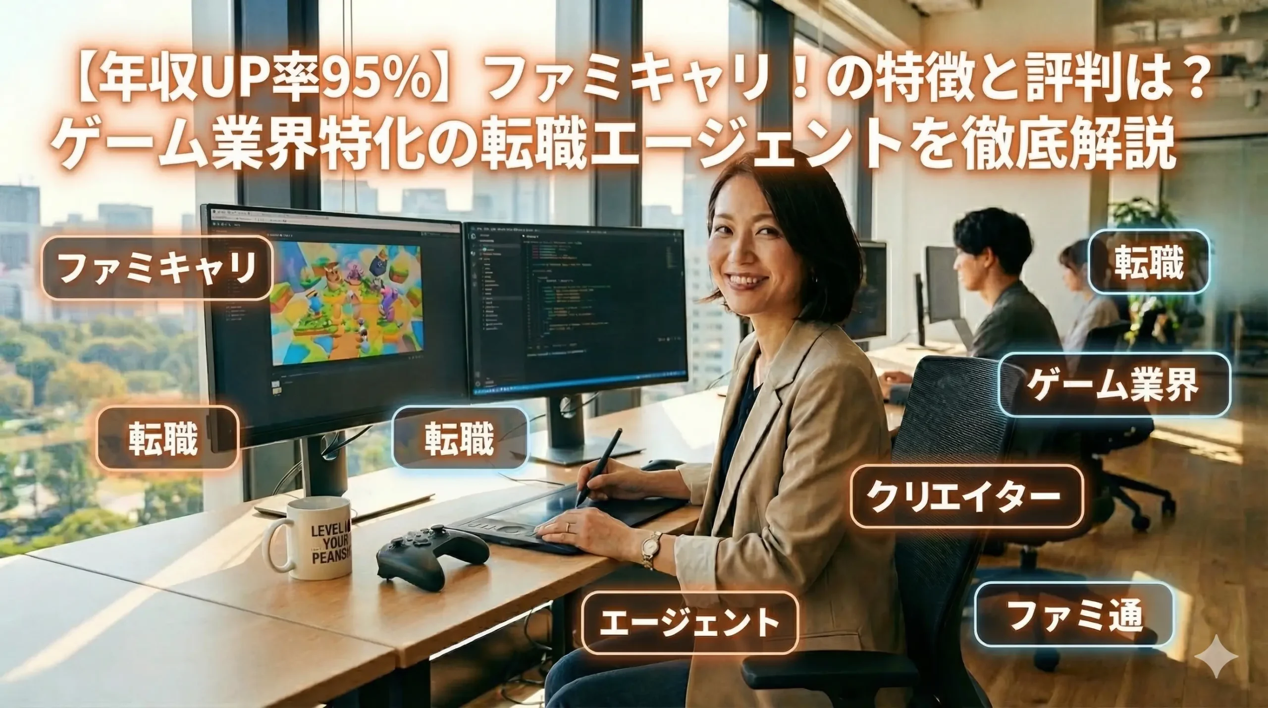 | ファミキャリ! | ゲーム業界特化で、業界理解を踏まえた支援を受けやすい | ゲーム業界を第一志望にしている人 | ゲーム業界中心で探しやすい | 業界特化の相談がしやすい | ゲーム業界志望者には相性が良い一方、業界外を広く見たい人にはやや絞られやすい |