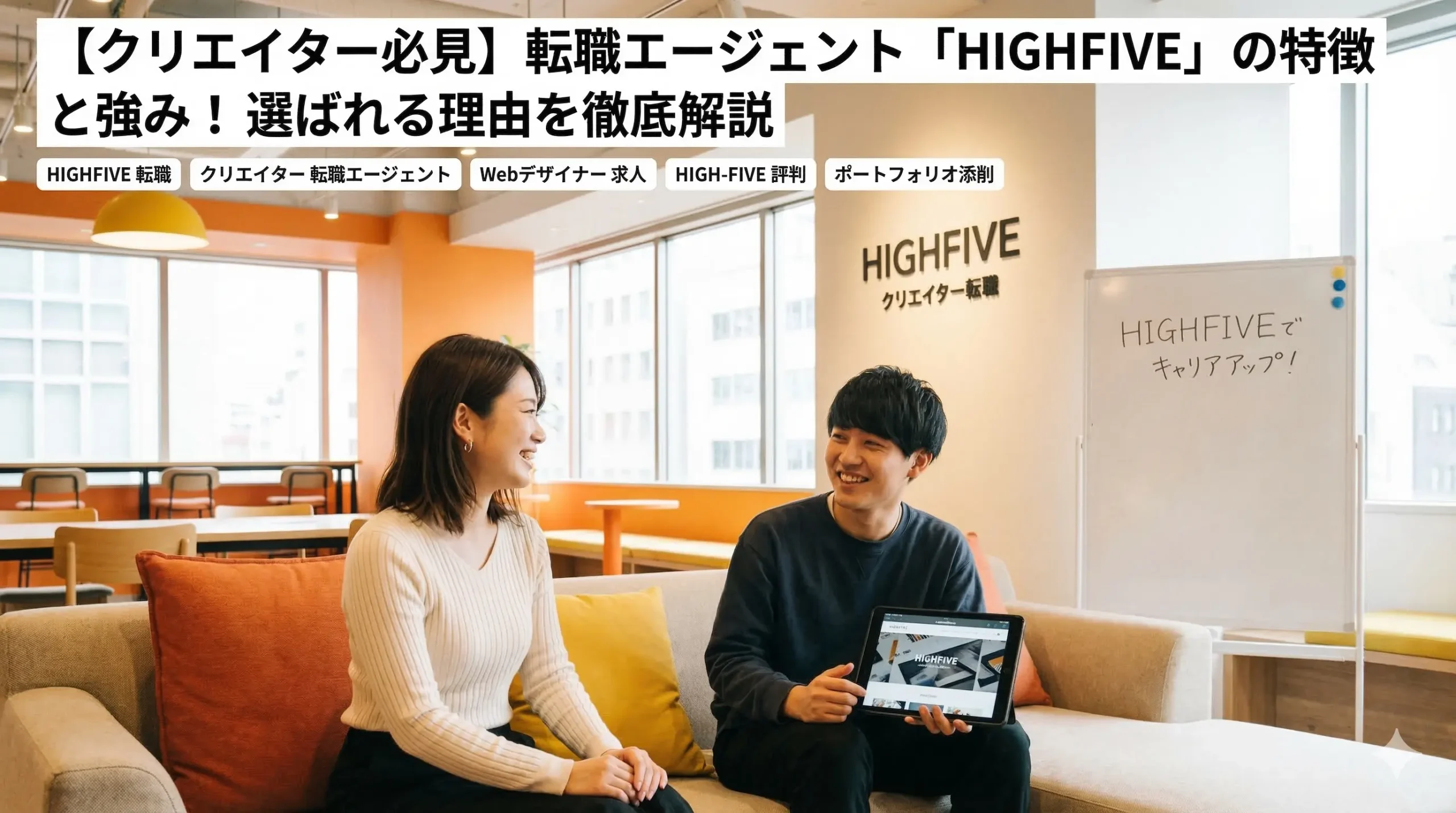 | HIGH-FIVE | デザイナー・クリエイター専門で、UI/UXやWebディレクター領域にも強い | Web・エンタメ業界で専門性の高い相談をしたい人 | 職種特化で厳選されやすい | クリエイター目線の転職支援を受けやすい | 専門性の高い相談がしやすい一方、希望職種によって相性は分かれやすい |