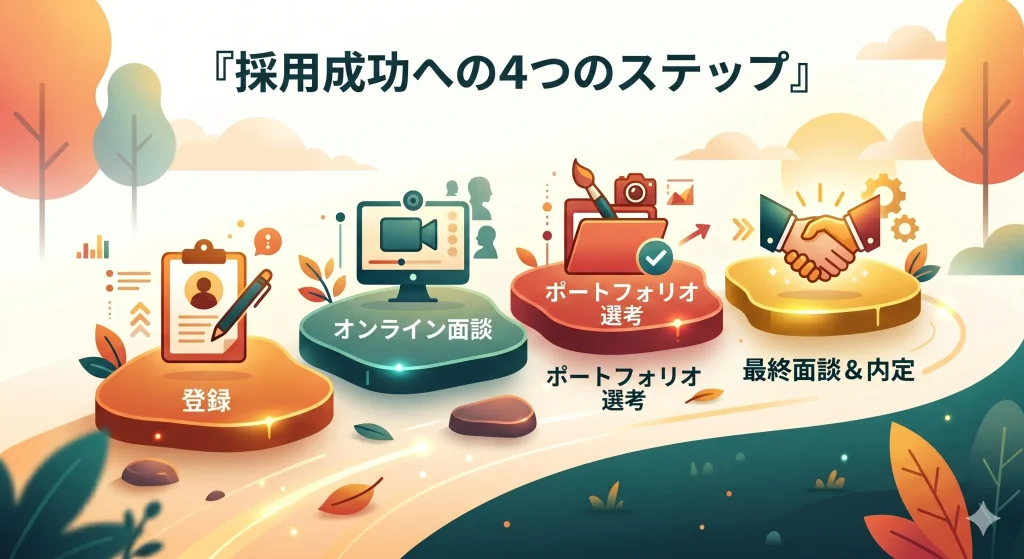 登録から入社まで、専任の担当者がしっかりと伴走してくれます。流れを確認しましょう。